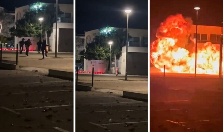 Një regjistrim tregon katër persona të panjohur, të veshur me të zeza dhe me kapele në kokë, duke ndezur mjetin shpërthyes. Pasi u larguan nga vendi, mjeti shpërtheu.
