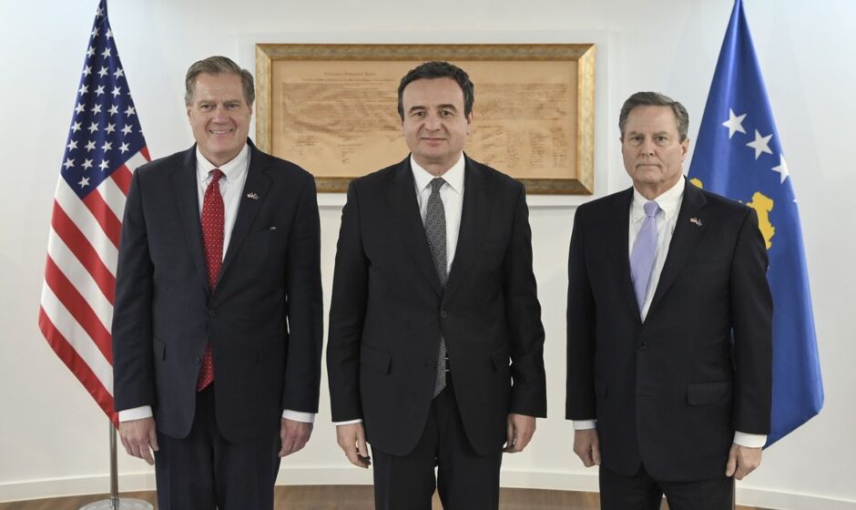 Kryeministri në detyrë, Albin Kurti, priti sot një delegacion të Kongresit amerikan, të përbërë nga kongresisti republikan Mike Turner dhe kongresisti demokrat Donald Norcross, të dy anëtarë të Asamblesë Parlamentare të NATO-s dhe të Komitetit të Shërbimeve të Armatosura të Dhomës së Përfaqësuesve.