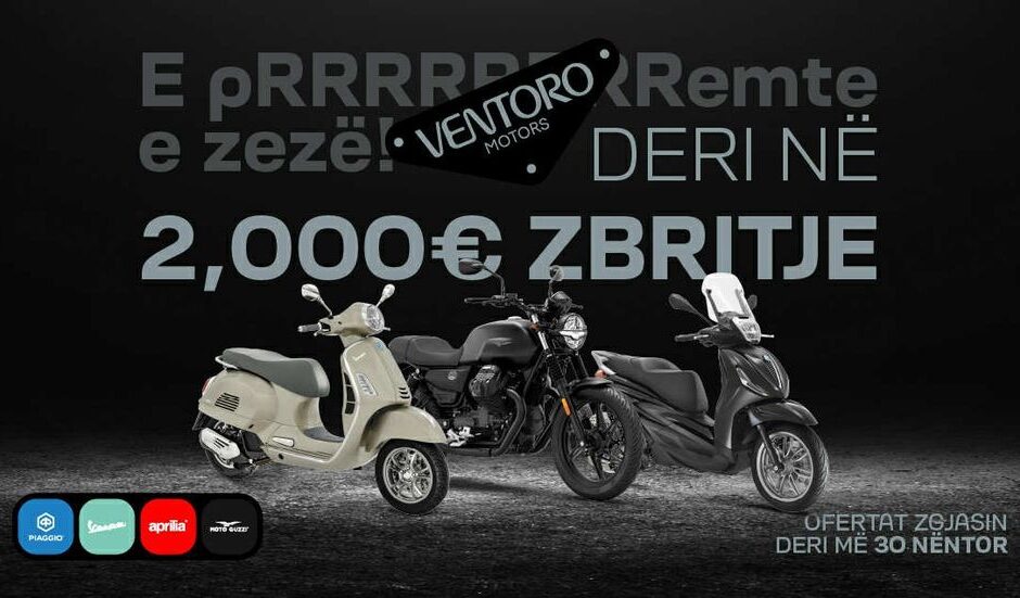 Ventoro Motors ofron zbritje të mëdha deri në 2000€ për adhuruesit e motorëve dhe skuterëve këtë Black Friday. Kompania, e njohur për motorë dhe skuterë cilësorë, ofron një gamë të gjerë modelesh, nga ato klasike deri te motorët sportivë. Në mesin e markave të shquara janë Aprilia, Vespa, Piaggio dhe Moto Guzzi, të gjitha me çmime tërheqëse. Oferta është e vlefshme deri më 30 nëntor dhe nxiton të përfitosh avantazhet e hershme. Black Friday këtë vit ofrohet një mundësi unike për ata që duan të përmirësojnë përvojen e tyre të udhëtimit me një motor të ri.